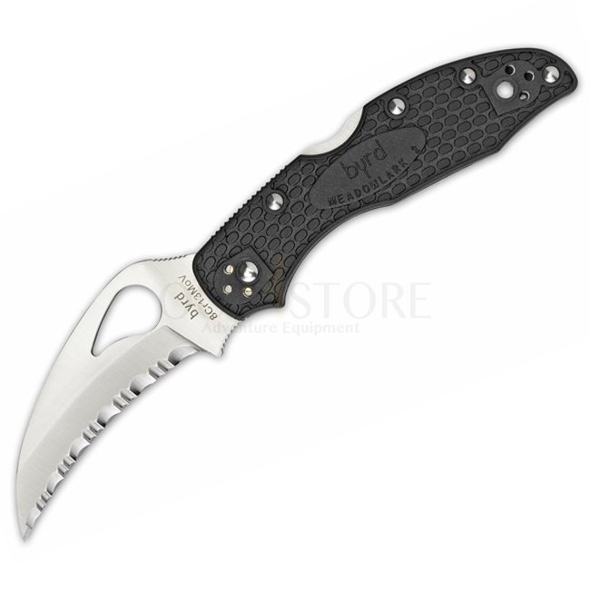 Spyderco Hawkbill Serrated Knife - Lightweight and durable, featuring a 73mm 8Cr13MoV blade and glass-reinforced nylon handle. Weighing only 75g, with a total length of 173mm.