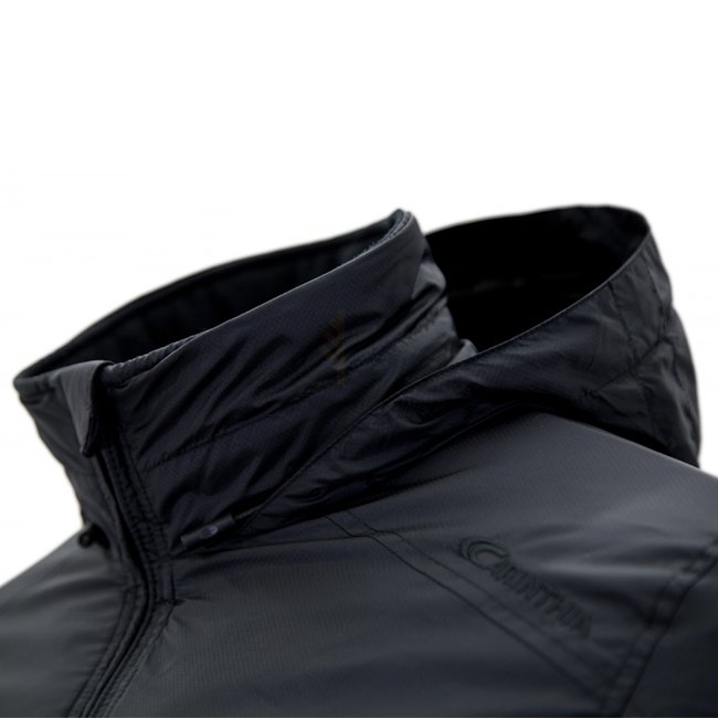 The Carinthia LIG 4.0 Jacket in Black is a water-repellent jacket with adjustable collar, stowable hood, and thermal fleece inner collar. It features large outer pockets, inner wrist warmer, adjustable drawcord at waist, and integrated storage bag. Insula