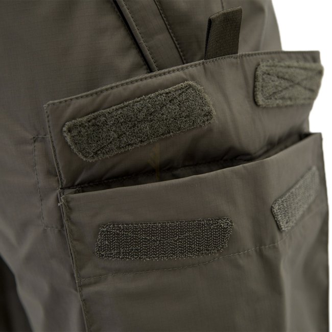 Carinthia MIG 4.0 Trousers - Olive - M - High-performance outdoor trousers with G-LOFT insulation and Gore Windstopper material. Features adjustable waist, multiple pockets, reinforced areas, and ventilation openings. Includes compression bag, optional ho