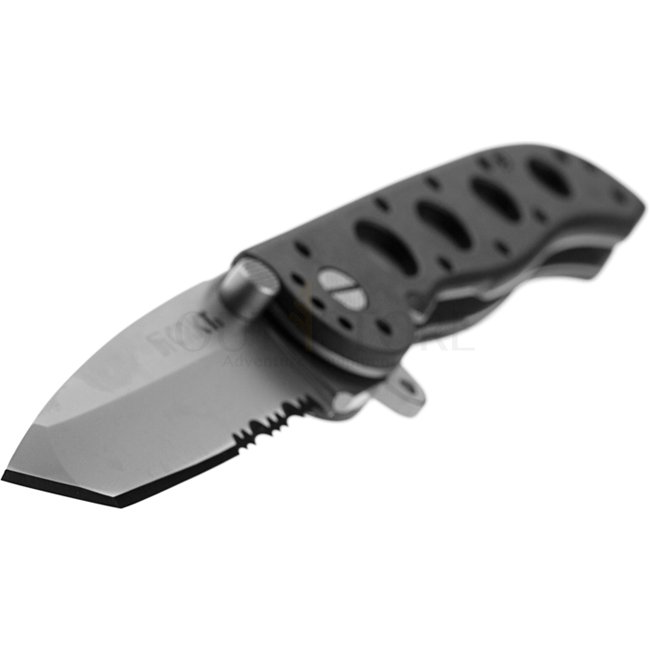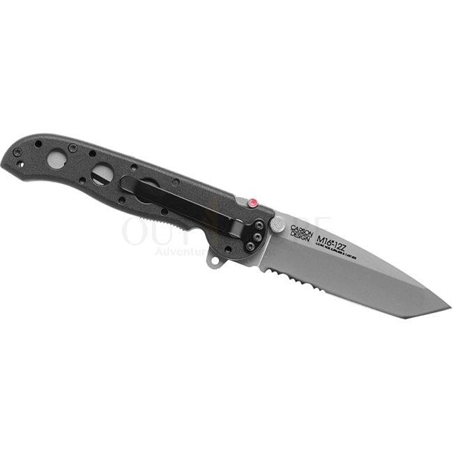 CRKT M16-12Z Folder is a strong, lightweight knife featuring AUS 8 steel blade with Triple Point Serrations™ for cutting performance. The handle is made of glass fiber reinforced nylon, providing durability and a secure grip. Overall size: 187.33mm with a