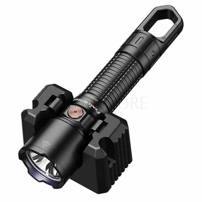 The Fenix WF25RM is designed for professional use, offering up to 3,000 lumens white light and a 365 nm UV LED rated at 500 mW. The white beam reaches up to 370 meters, with a peak intensity of approximately 34,225 candela. A built-in proximity sensor will auto‑downshift when the beam gets too close to a surface. It can be charged in its magnetic dock or via the magnetic cable — ideal for workshop and inspection tasks.