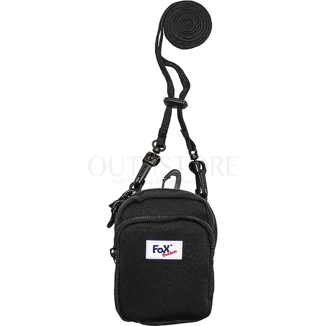FoxOutdoor Camera Pouch Neoprene - Black: Adjustable camera pouch with detachable strap, belt loop, carabiner, and multiple compartments. Dimensions: 8 x 11 x 7 cm. Material: 70% Polyester, 30% Neoprene.