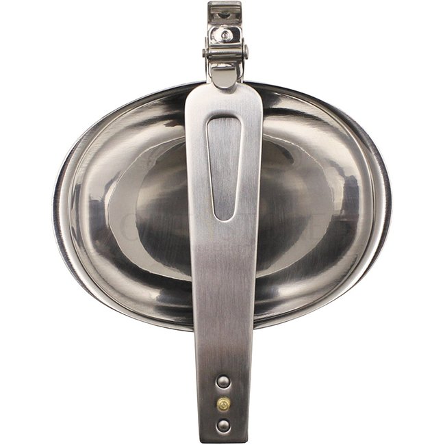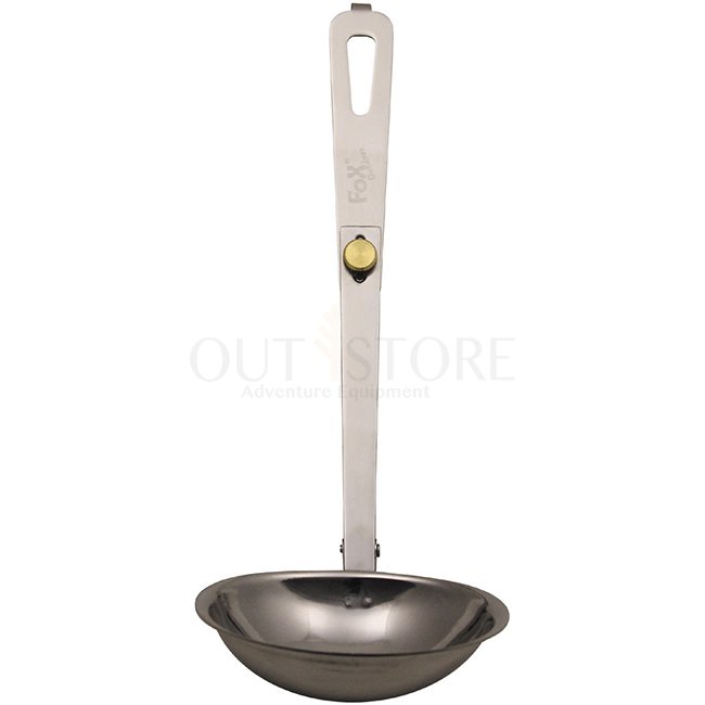 Foldable stainless steel ladle with suspension eyelet and hook. Length unfolded: 26 cm, folded: 13 cm. Bowl size: 10 x 7.5 x 3 cm (L x W x H). Lightweight at 120 g. Made of 100% stainless steel.