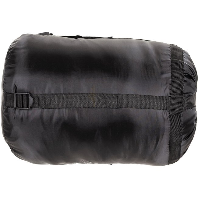 FoxOutdoor Mummy Sleeping Bag 2 Layer Filling - Black; Temperature range: -10¯C to +15¯C; 2-layer filling; top 2-way zip with velcro; hood-shaped head part with drawstring; adjustable shoulder area with drawstring; draft collar with drawstring; 2 bottom l