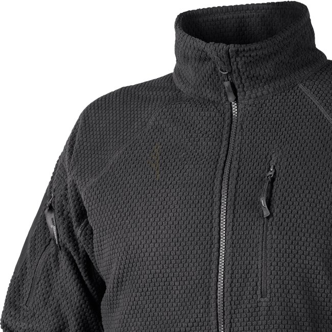 Alpha Hoodie is a lightweight fleece jacket, perfect as an additional layer or as a main layer. Reinforcements on elbows and shoulders prevent fleece from being damaged during use. The jacket has five zippered outer pockets: two bicep pockets, two classic hip pockets and one chest pocket. The chest pocket has also a small hole for cables. Drawstring in the bottom part as well as elastic binding at the cuffs and hood, makes this jacket fit perfectly, therefore providing the right protection against cold.