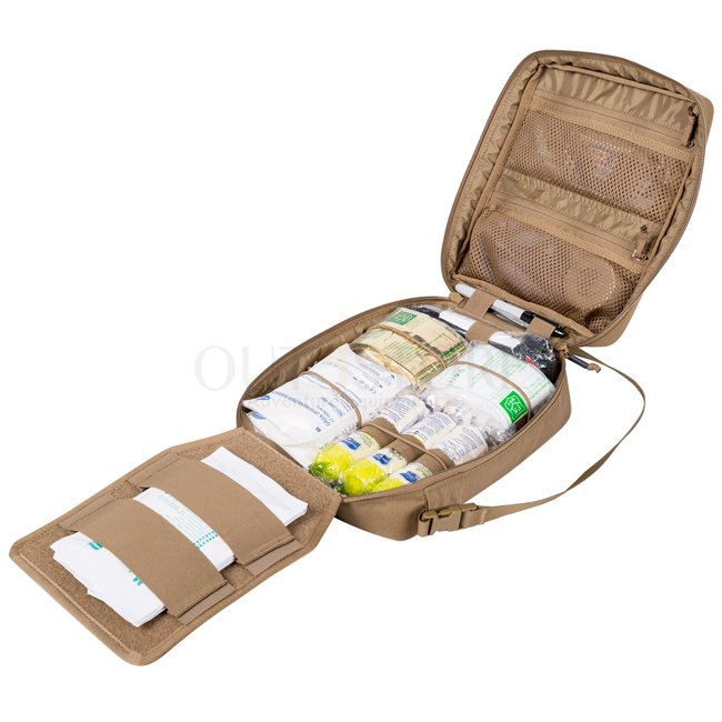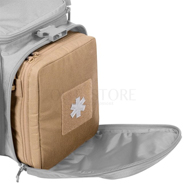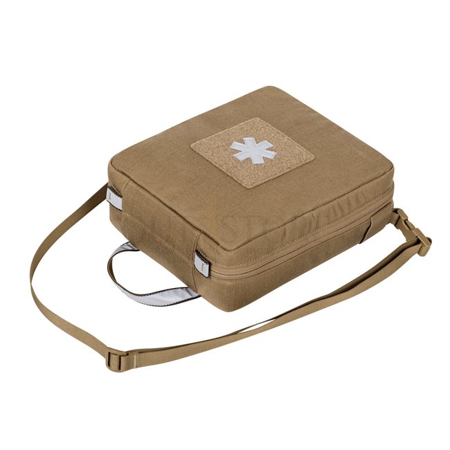 The Automotive Med Kit was designed as the main vehicular first aid kit. Its compact, flat form allows it to be fit under the seats, in side doors or seat pockets, while lack of sharp edges prevents snagging. The front part of the Med Kit has a large panel of loop velcro for individual marking, with a reflective panel for quick identification. Also handles are marked with reflective tape to facilitate their finding with minimal light. Thanks to a detachable shoulder strap, the Med Kit can be worn just like a messenger bag.