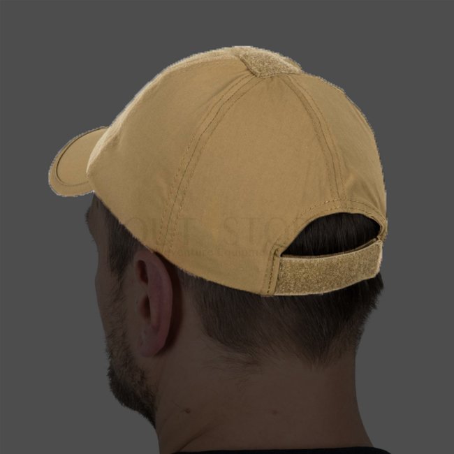 Helikon-Tex BBC Folding Outdoor Cap - Coyote. Lightweight and breathable cap made with VersaStretch fabric. Features a folding visor and front loop panel for attaching ID patches.