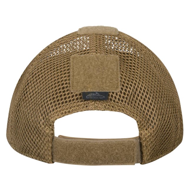 Adjustable baseball cap equipped with a set of soft velcro panels for ID/morale patches. Crafted form mesh which enhances breathability. Intended for use in hot weather conditions. Mid-depth cut works with variety of LE/Mil headgear systems.