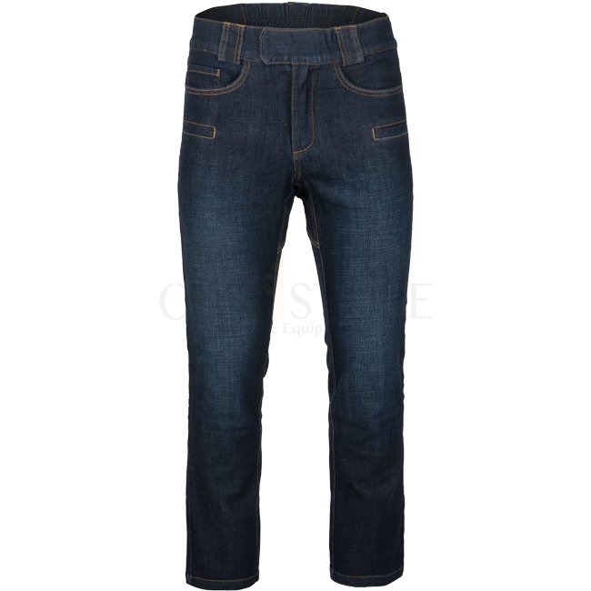 Helikon-Tex Greyman Tactical Jeans in slim design. Features crotch gusset for ease of movement, elastic belt with hook&loop closure, and 9 pockets for essentials.