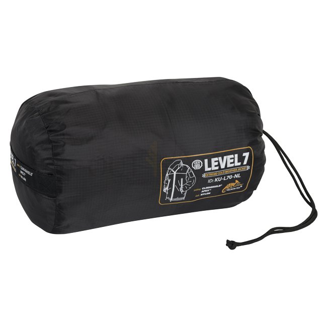 The LVL 7 is a fully insulated outer layer. Hydrophobic properties of Climashield® Apex™ keep user warm and dry in extreme cold weather conditions. If exposed to moisture, textile dries immediately. Nylon outer layer provides durability, secures insulation material and provides crucial wind and water resistance without blocking the breathability. Helmet-compatible hood can be easily adjusted by drawstrings hidden in chest pockets. High, soft fleece lined collar keeps vital body parts warmed. Two chest pockets are lined with fleece to provide protection against frostbite. LVL 7 is highly compressible – can be stuffed in a pack or cargo pouch, without any damage to its properties.