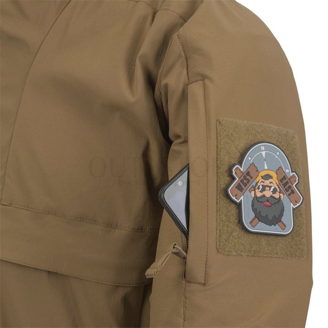 Stay prepared for any adventure with the Helikon-Tex Mistral Anorak Jacket in Mud Brown XL size. Made of durable StormStretch fabric, this jacket features a loop panel for personalization, a large kangaroo pocket with an internal organizer, adjustable hoo