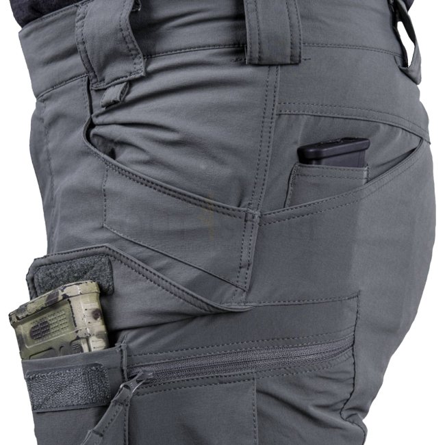 Many of our customers operate not only in cities, but in the boondocks as well. Listening to their positive feedback about using UTP®, our designers have created their special outdoor version & voila, thats Outdoor Tactical Pants®. They have retained all functionalities of their predecessor, but some details were tweaked to better fit the terrain use. These pants are made of VersaStretch® Lite - the lighter, much more breathable version of our standard VersaStretch® fabric, therefore they are just perfect for warm days, but still, due to the DWR coating, they will protect you against light rain or wind. The cut and pocket layout retain the civilian outlook, not disclosing the operator. The OTP® design allows to carry all essential equipment, and anatomic cut does not hinder movements. Elastic waistband and velcro-closure allow a degree of adjustability within size. Large belt loops allow wide belts to be used (EDC, UTL® or Cobra®, up to 50 mm width). The jeans cut on the rear part of the pants prevents them from sliding down. Pocket layout allows to distribute the load close to the center mass & around hips and waist. Pocket edges are reinforced to withstand constant sliding of the light and knives clips. Two Velcro-closed front pockets are big enough to take a smart phone & or a spare rifle (AK/AR) magazine. Zippered thigh pockets seem small enough, but they would carry a wallet or a small pouch. A wide variety of colors allow to find the proper one to match the working conditions or other garments.