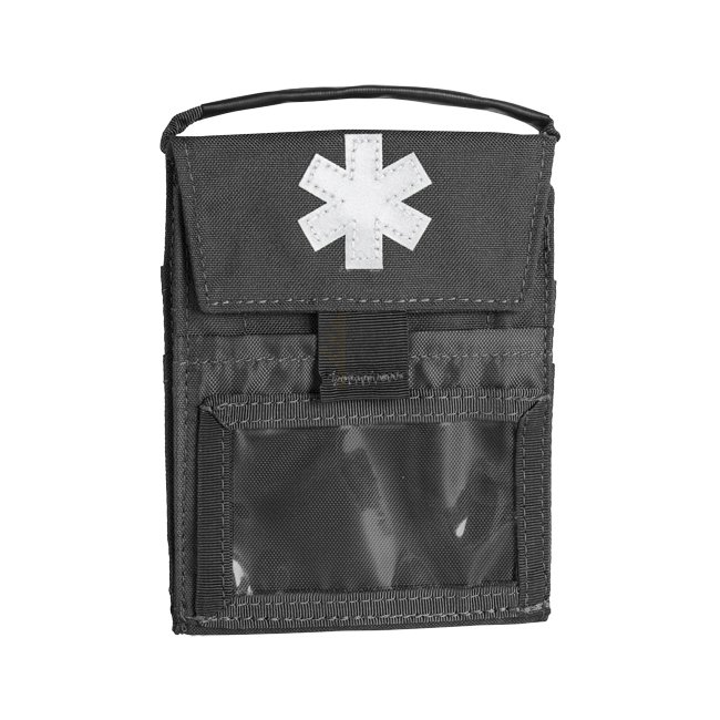 Helikon-Tex Pocket Med Insert - Black: Small, lightweight, flat first aid kit for pants pocket. Contains basic items like gloves, ICE Card, plasters, saline bottle, and trauma shears.