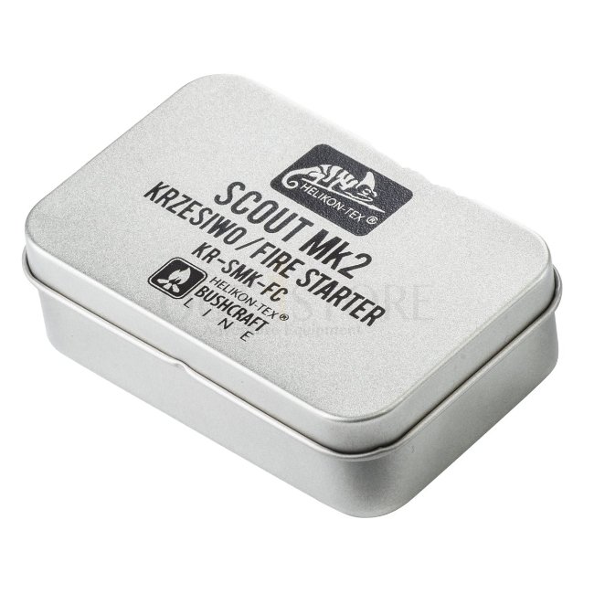 Scout Mk2 Firestarter is a set that allows you to light a fire effectively without using matches or a lighter. The steel box included in the set lets you carry the firestarter and other elements without the risk of losing them. The Bushcraft Line logo printed on it allows you to easily identify the set. The Scout MK2 firestarter is very easy to use. Even a slight movement of the scraper should generate enough sparks to light the cotton wool or birch bark.