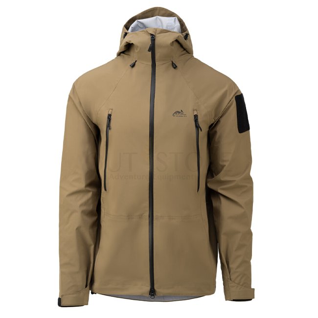 The Helikon-Tex Squall Hardshell Jacket is a premium rain jacket designed for extreme weather conditions. Features a 3-layer TorrentStretch membrane with 30,000mm water column rating, taped seams, dual-adjustable hood, and YKK AquaGuard zippers.