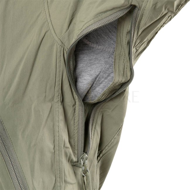 The Trooper is an extremely lightweight soft shell jacket. It protects from light wind and rain, while still being breathable. The collar-stowed hood can be deployed fast and easy due to a two-way zipper and is adjustable to fit other headgear or equipment (e.g. headset). Seven pockets ready to stow lots of essentials evenly. Two zippered breast pockets have organizers and lanyard D-rings. Internal pocket is loop-closed. Two zippered upper-sleeve pockets have wiring eyelets. Left lower sleeve has a zippered pocket as well. The jacket is compressible, making it easy to transport in a bag, backpack or even a cargo pocket.