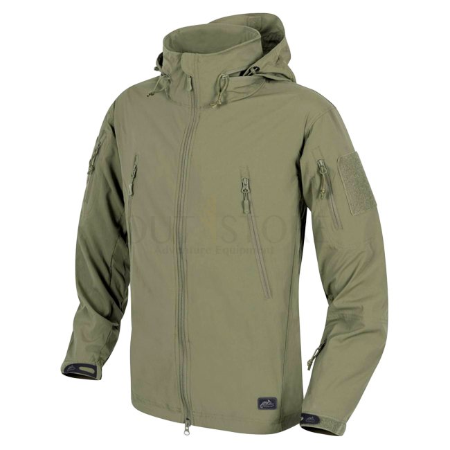 The Helikon-Tex Trooper Jacket in Olive XL is an extremely lightweight soft shell jacket that protects from light wind and rain, while remaining breathable. Collar-stowed hood, seven pockets, and compressible design for easy transport.