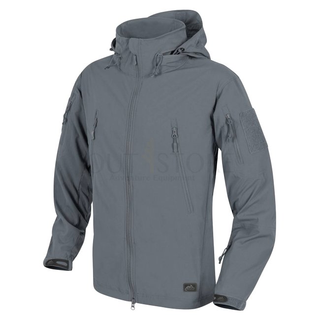 The Helikon-Tex Trooper Jacket in Shadow Grey is an ultra-lightweight soft shell jacket that provides protection from light wind and rain while remaining breathable.