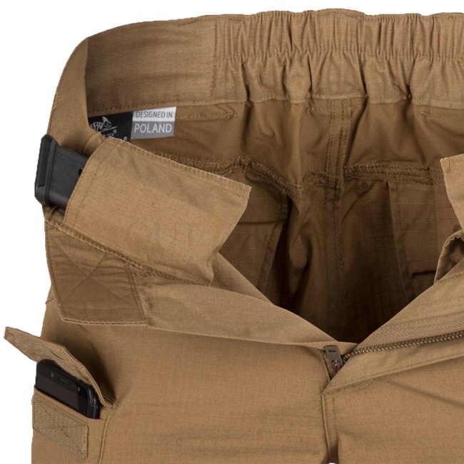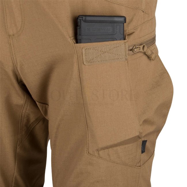 "Some products have a kind of cult following. For each manufacturer facing a crowd of satisfied clients is not only enormous joy, but also confirmation that the product is right. Following up the popularity of the Urban Tactical Pants, weve decided to release their new version – Urban Tactical Flex Pants. Even though the main construction of the pants is the same as in the UTP, there are some major changes. The most important change is the fabric – weve decided to use nonelastic NyCo RipStop fabric, which is known to be one of the best and most durable clothing fabric on the market. To maintain the users freedom of movement, weve decided to add VersaStretch elastic panels in the crotch and back neck area. The cut and pockets layout employed in these pants maintain civilian look to retain anonymity, while retaining full functionality of combat pants, capable of supporting tactical essentials. Elastic hook&loop-closed belt allows easy adjustment. Wide belt loops allow as wide as 50 mm belt, including all Helikon-Tex tactical belts: EDC, UTL or Cobras. By judicious layout of the pockets, equipment can be placed close to the center mass, around the hips and waist. Front and rear pockets edges are reinforced to withstand constant movement of light or knife clips. Two Velcro-closed front pockets are big enough to carry a smartphone – or even an AR/AK rifle magazine. Thigh zippered pockets look flat – but its design allows pouches or wallets to be carried with ease. Bespoke internal pockets await being filled with Low Profile Protective Pads. Three types of fabric plus wide variety of colors allows to match trousers to the rest of wardrobe or working conditions."