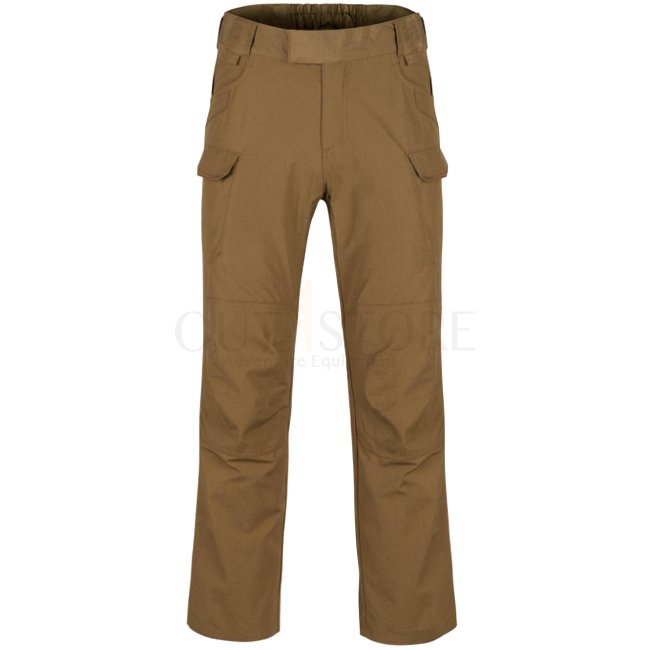 Helikon-Tex UTP Urban Tactical Flex Pants in Coyote color, size M-XLong. Made with nonelastic NyCo fabric for durability and VersaStretch panels for freedom of movement. Features elastic waistband, wide belt loops, various pockets including smartphone and