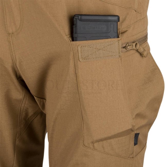 Some products have a kind of cult following. For each manufacturer facing a crowd of satisfied clients is not only enormous joy, but also confirmation that the product is right. Following up the popularity of the Urban Tactical Pants®, we've decided to release their new version – Urban Tactical Flex Pants®. Even though the main construction of the pants is the same as in the UTP, there are some major changes. The most important change is the fabric – we've decided to use nonelastic NyCo RipStop fabric, which is known to be one of the best and most durable clothing fabric on the market. To maintain the users freedom of movement, we've decided to add VersaStretch® elastic panels in the crotch and back neck area. The cut and pockets layout employed in these pants maintain civilian look to retain anonymity, while retaining full functionality of combat pants, capable of supporting tactical essentials. Elastic hook&loop-closed belt allows easy adjustment. Wide belt loops allow as wide as 50 mm belt, including all Helikon-Tex® tactical belts: EDC, UTL or Cobras. By judicious layout of the pockets, equipment can be placed close to the center mass, around the hips and waist. Front and rear pockets edges are reinforced to withstand constant movement of light or knife clips. Two Velcro-closed front pockets are big enough to carry a smartphone – or even an AR/AK rifle magazine. Thigh zippered pockets look flat – but its design allows pouches or wallets to be carried with ease. Bespoke internal pockets await being filled with Low Profile Protective Pads. Three types of fabric plus wide variety of colors allows to match trousers to the rest of wardrobe or working conditions.