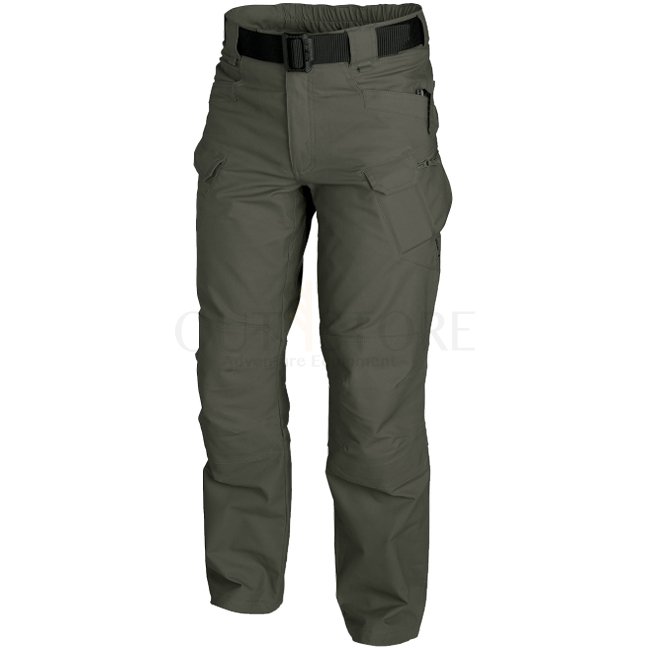 Helikon-Tex UTP Urban Tactical Pants in Taiga Green, size 3XL Long. Classic blue jeans cut with tactical functionality. Elastic Velcro-closed belt for easy adjustment. Wide belt loops for up to 50mm belts. Reinforced pockets for gear clips. Thigh cargo po