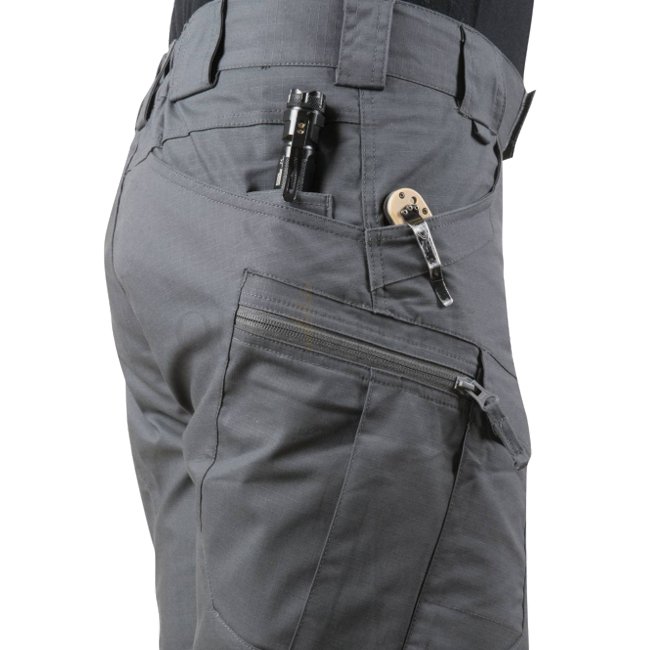 What to do, when it’s stifling hot and yet you need to go tactical and need all the tactical functionality of the UTP pants? Try the UTS, Urban Tactical Shorts or our best-selling pants cut-down version. The cut and pockets layout allow them to stay civilian enough not to disclose the wearer’s identity, while still allowing to wear full set of tactical equipment. Elastic velcro-closed belt allows a measure of adjustment within the size. Large belt loops allow wide belts like EDC, UTL or Cobra. Plus the cut (nicked from blue jeans, out of all to choose from) prevents loosing the shorts while wearing. By judicious layout of the pockets, equipment can be placed close to the center mass, around the hips and waist. Front and rear pockets edges are reinforced to withstand constant movement of light or knife clips. Two velcro-closed front pockets are big enough to carry a smartphone – or even an AR/AK rifle magazine. Thigh zippered pockets look flat – but its design allows pouches or wallets to be carried with ease. A wide variety of colors allows to match shorts to the rest of wardrobe or working conditions. Belt not included