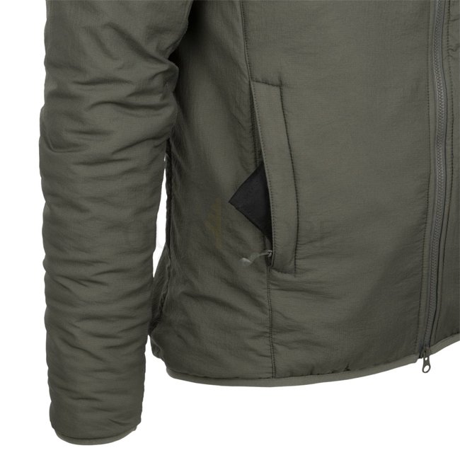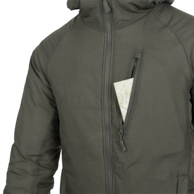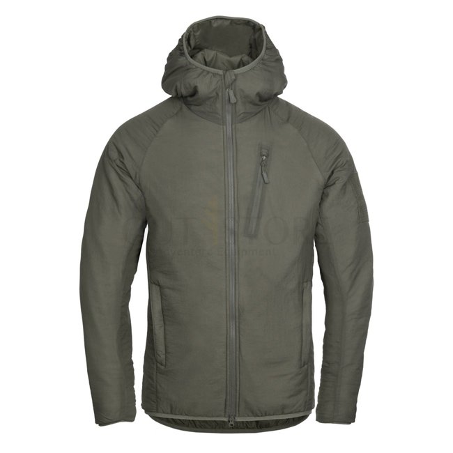 Stay warm and protected in the Helikon-Tex Wolfhound Climashield Hoodie - Alpha Green - L. Lightweight, packable, WindPack nylon outer layer, Climashield Apex padding, multiple zippered pockets, adjustable hood, YKK zippers. Material: 100% Nylon outside,
