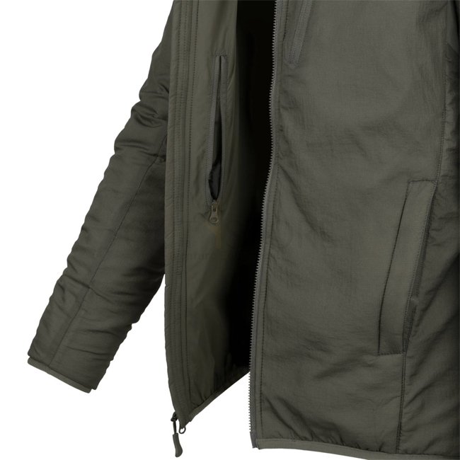 Stay warm and stylish with the Helikon-Tex Wolfhound Climashield Hoodie in Alpha Green, size XS. Features WindPack nylon outer layer, Climashield Apex padding, 4 zippered pockets, adjustable hood, and more. Lightweight, packable, and personalized loop pan