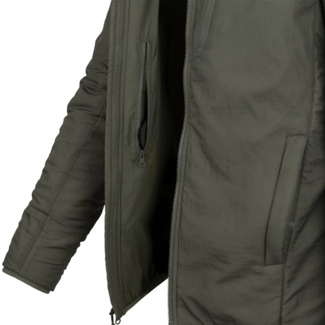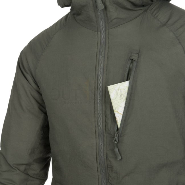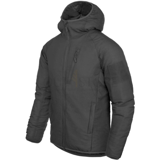 Stay warm and comfortable with the Helikon-Tex Wolfhound Climashield Hoodie in Black. Lightweight, packable design with WindPack nylon outer layer and Climashield Apex padding. Features multiple zippered pockets, adjustable hood, YKK zippers, and loop pan