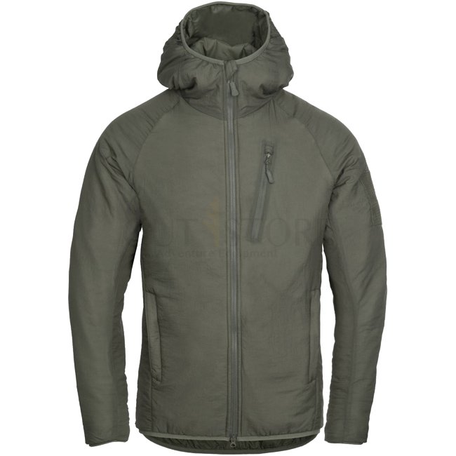 Stay warm and dry with Helikon-Tex Wolfhound Climashield Hoodie - Coyote - M. Lightweight, packable hoodie with WindPack nylon exterior, Climashield Apex padding, multiple zippered pockets, loop panel for personalization, adjustable hood, and YKK zippers.