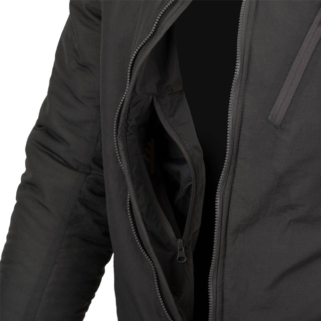 "Whenever light warming layer is needed and fleece is not up to the task, it’s the Wolfound to the rescue. This lightweight jacket was designed as an insulation layer, either standalone or combined with some outer layer. The Climashield® Apex™ insulation (same as in Level 7 Jacket) keeps the user warm in all conditions. It dries lightning-fast when wet. Outer Nylon shell is breathable, yet protects the insulation from damage and the wearer from light wind and rain. VersaStrech® fabric panels in armpits improve air circulation and enhances comfort, while cuffs of the same fabric keep sleeves closed, trapping the warm air and preventing wind from chilling arms. Soft fleece collar lining enhances wearing comfort and prevents abrasions. Lower front pockets are fleece lined for warmth. The Wolfhound Jacket is easily compressible and can be packed tight without insulation properties lost. Discreet velcro panel at left upper sleeve provides easy personalization. Outstanding warming properties, high breathability, light weight and high compressibility – all combine to make Wolfhound a perfect all-year garment for all outdoor enthusiasts (and more). ID panels dimensions: - Left arm patch panel: 9 x 10.5 cm / 3.5 x 4.1 in"