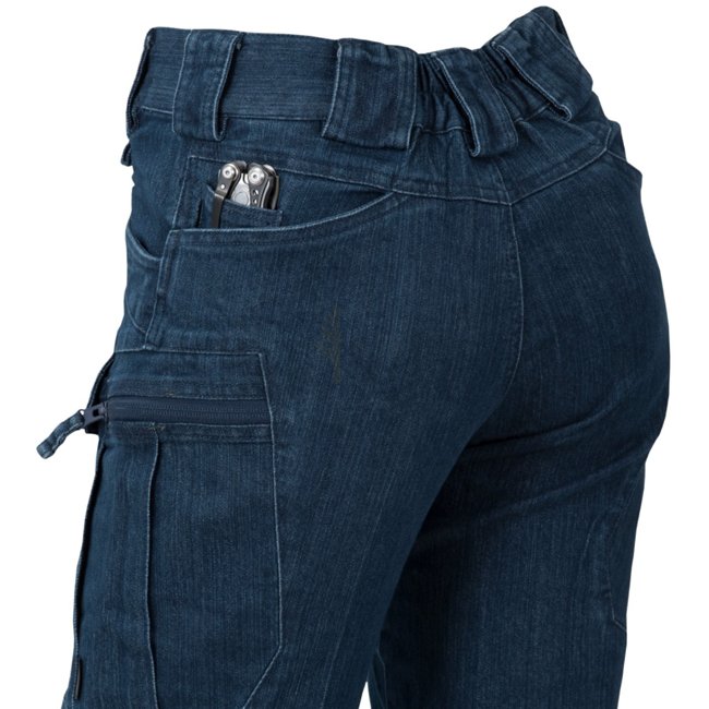 Helikon-Tex Womens UTP Resized Denim Stretch - Marine Blue - Size: 30 - 32. Advanced tactical pants for women designed for comfort and functionality in urban and outdoor settings. Featuring 12 pockets for organization of essentials. Knee pockets for prote
