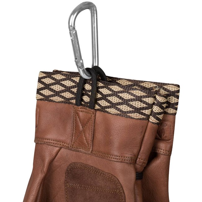 Woodcrafter Gloves are extended gloves, perfect for use while working outdoors. Made of durable cowhide leather to guarantee a right grip. Reinforcements on the inner side guarantee the better durability, but are not uncomfortable, even during prolonged use. Cord adjustment on cuff provide proper fit and prevents any unwanted objects from getting inside your gloves. Cord loop on cuff and simple carabiner allow you to attach the gloves to your belt or pack. Webbing on the end of the cuff not only work as reinforcement, but also improve the look of the gloves.