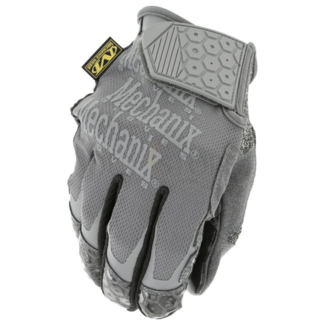 Comfortable Mechanix Box Cutter Gloves in Grey, size L, ideal for box handling, restocking, and warehouse work. Features Padlock™ no-slip silicone grip palm, touchscreen capable synthetic leather, and cut-resistant thumb overlay. Work with ease during hea
