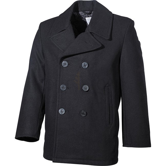 Stylish MFH US Pea Coat in classic black color, perfect for a sleek and polished look.