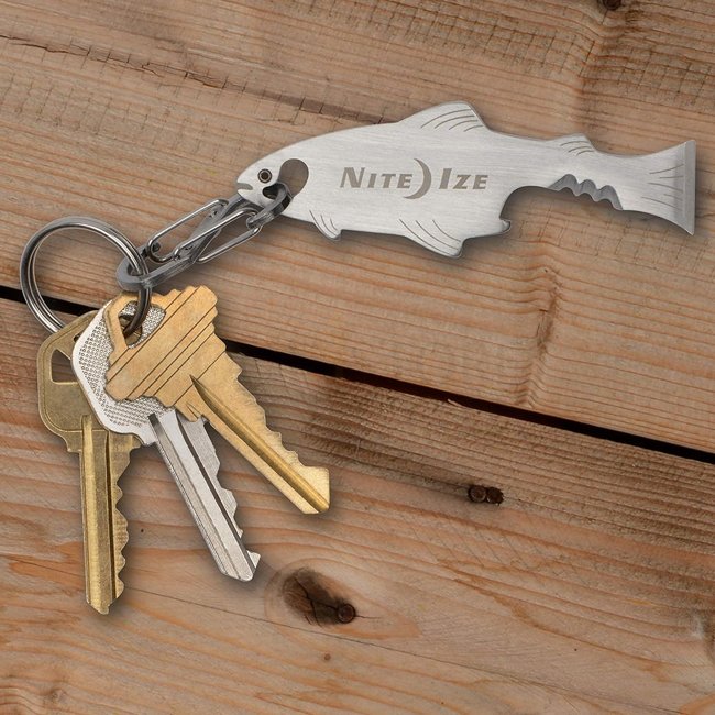 Nite Ize DoohicKey FishKey Key Tool - Key-sized multi tool with a fish-shaped design, bottle opener, serrated edge, and screwdriver. Conveniently attachable with stainless steel S-Biner.