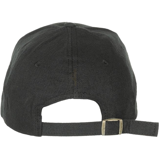 Adjustable cap with brass closure and quilted visor in black color. Made of 100% cotton, one-size-fits-all with reinforced seams and ventilation eyelets.