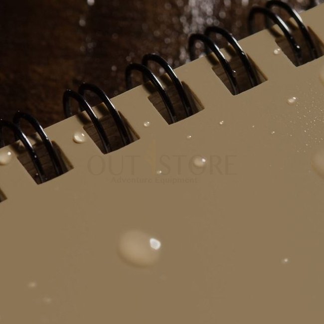 Rite in the Rain Polydura Top-Spiral Notebook 3 x 5 - Tan is a durable, compact notebook perfect for outdoor adventures. Impact-resistant Wire-O ensures durability while the Polydura cover material protects your notes. Includes useful printed information