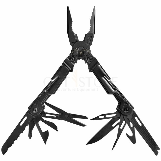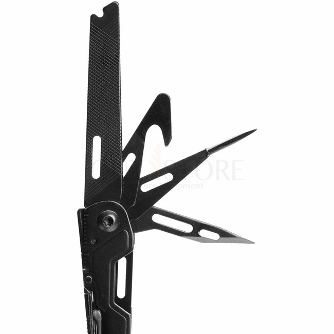 SOG Power Pint - Black multitool is lightweight and compact, weighing 119g and measuring 127mm in total length. It features a durable 5CR15MOV blade and a sleek stainless steel handle.