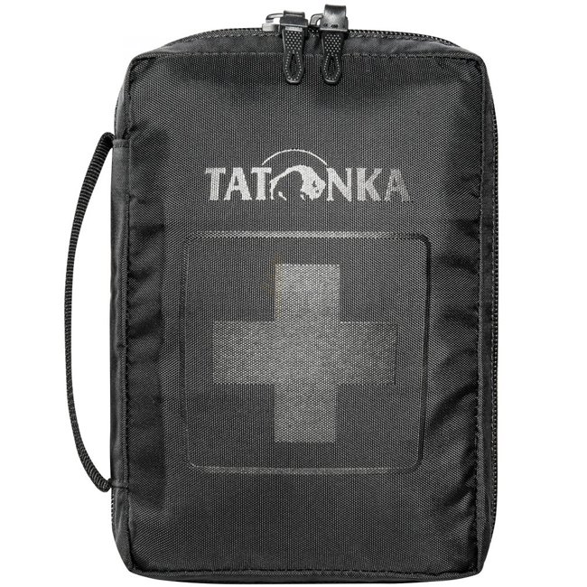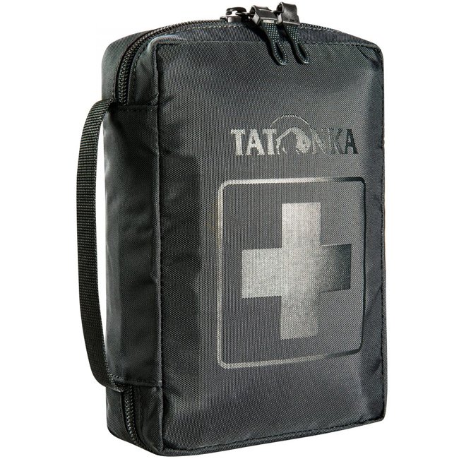 First aid bag Tatonka First Aid in size S (18 x 12,5 x 5,5 cm) with zipper, handle and divided main compartment (without contents).
