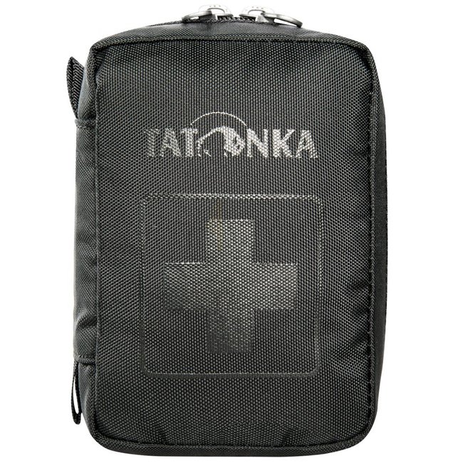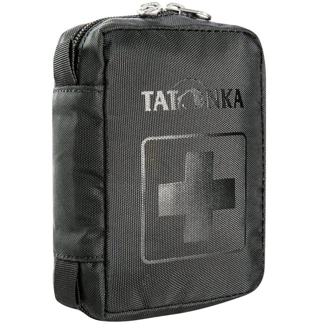 Tatonka First Aid XS - Black: Compact first aid bag with all-round zip, handle, and divided main compartment. Can be attached to belt or backpack. (200 characters max)