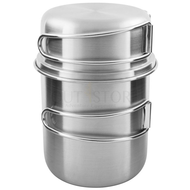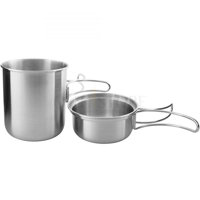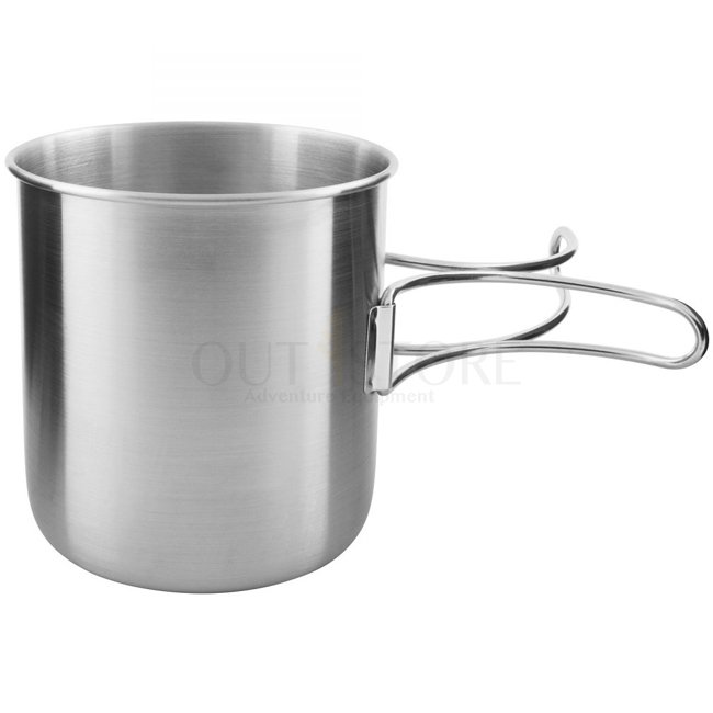 The Tatonka Handle Mug Set consisting of mug and lid with folding handles is suitable as basic equipment for trekking. Both have a volume scale and are made of 18/8 stainless steel. The cup has a capacity of 600 ml, the lid with a height of 4 cm can be used as a bowl or pan.