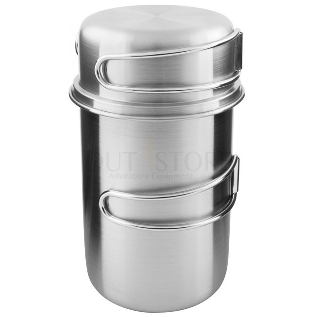 The Tatonka Handle Mug 850 Set is made of 18/8 stainless steel and has folding handles and a practical volume scale. The set is non-toxic, unbreakable, food safe and easy to clean.