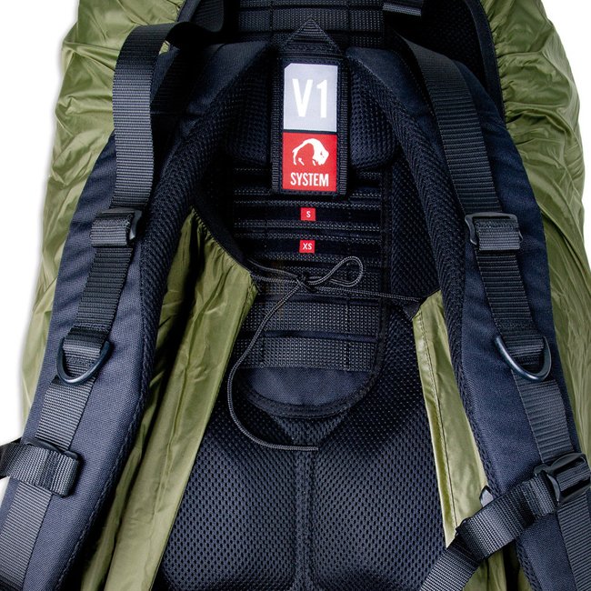 The Rain Flap reliably protects the contents of the backpack from moisture. It is simply pulled over the backpack and fixed with a drawstring with cord stopper.