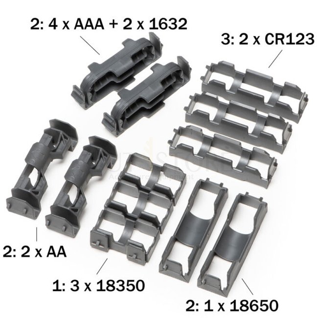 • Three 2 x CR123 inserts (also called 16650 inserts).