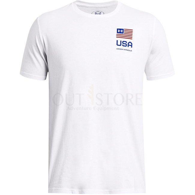 The UA Freedom Amp 4 Tee blends soft comfort with a patriotic aesthetic. A bold flag graphic with the Under Armour logo makes a powerful visual impression.
