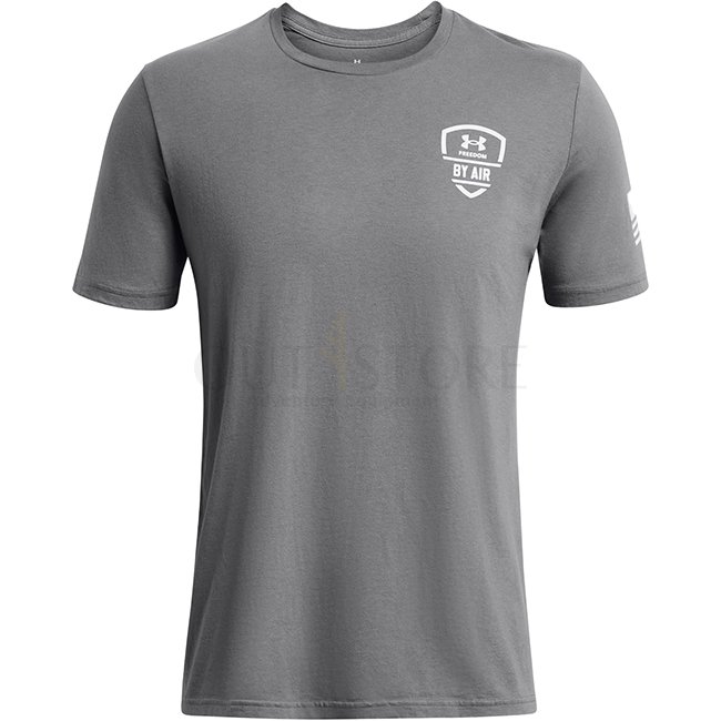 The UA Freedom By Air Tee combines comfort and patriotic design. It supports the freedom theme with understated graphics and a soft fabric feel.