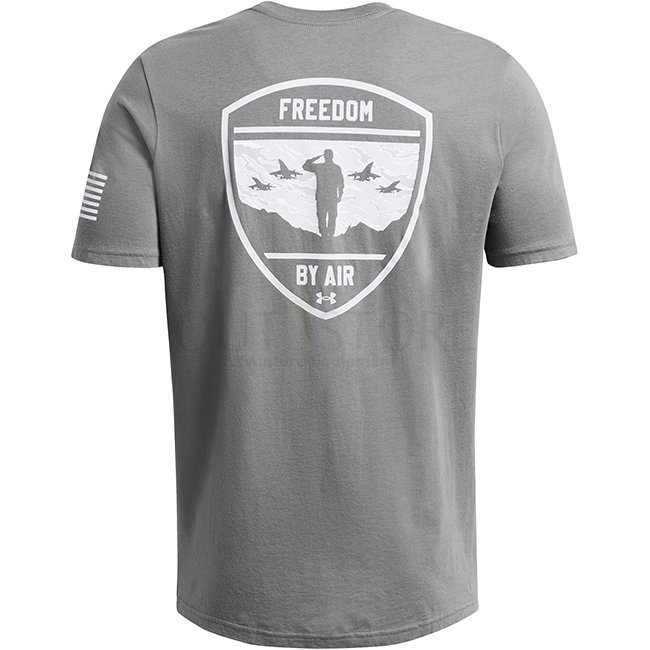 The UA Freedom By Air Tee combines comfort and patriotic design. It supports the freedom theme with understated graphics and a soft fabric feel.