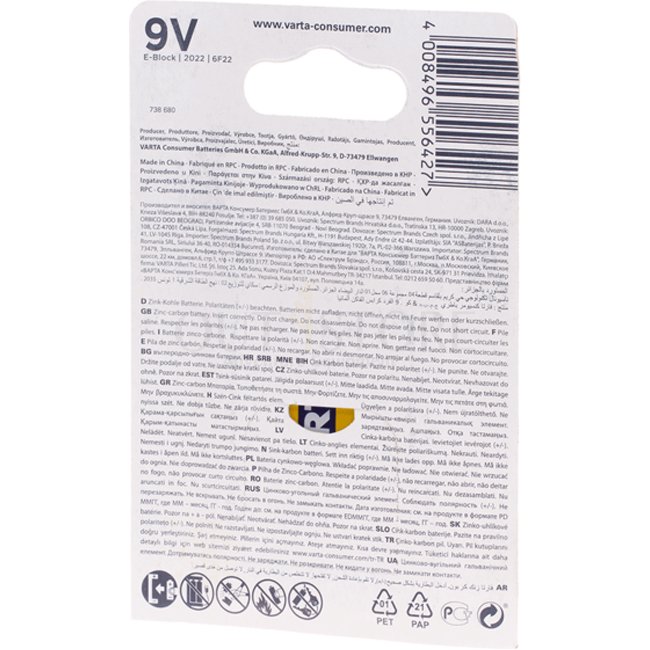 Varta 9V Block Superlife - long-lasting and reliable power source for your high-drain devices. Perfect for smoke detectors, toys, and other gadgets. Ensure your devices stay powered up with Varta's trusted performance.